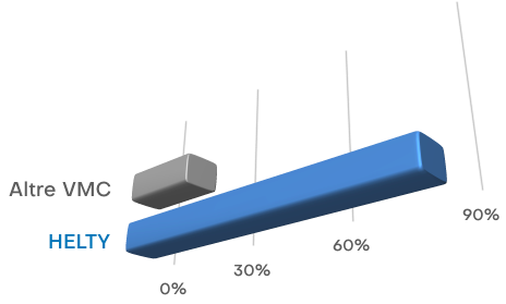 Helty Flow recupera l’86% del calore dell’aria esausta che esce, riscaldando poi quella in entrata per farti risparmiare davvero.